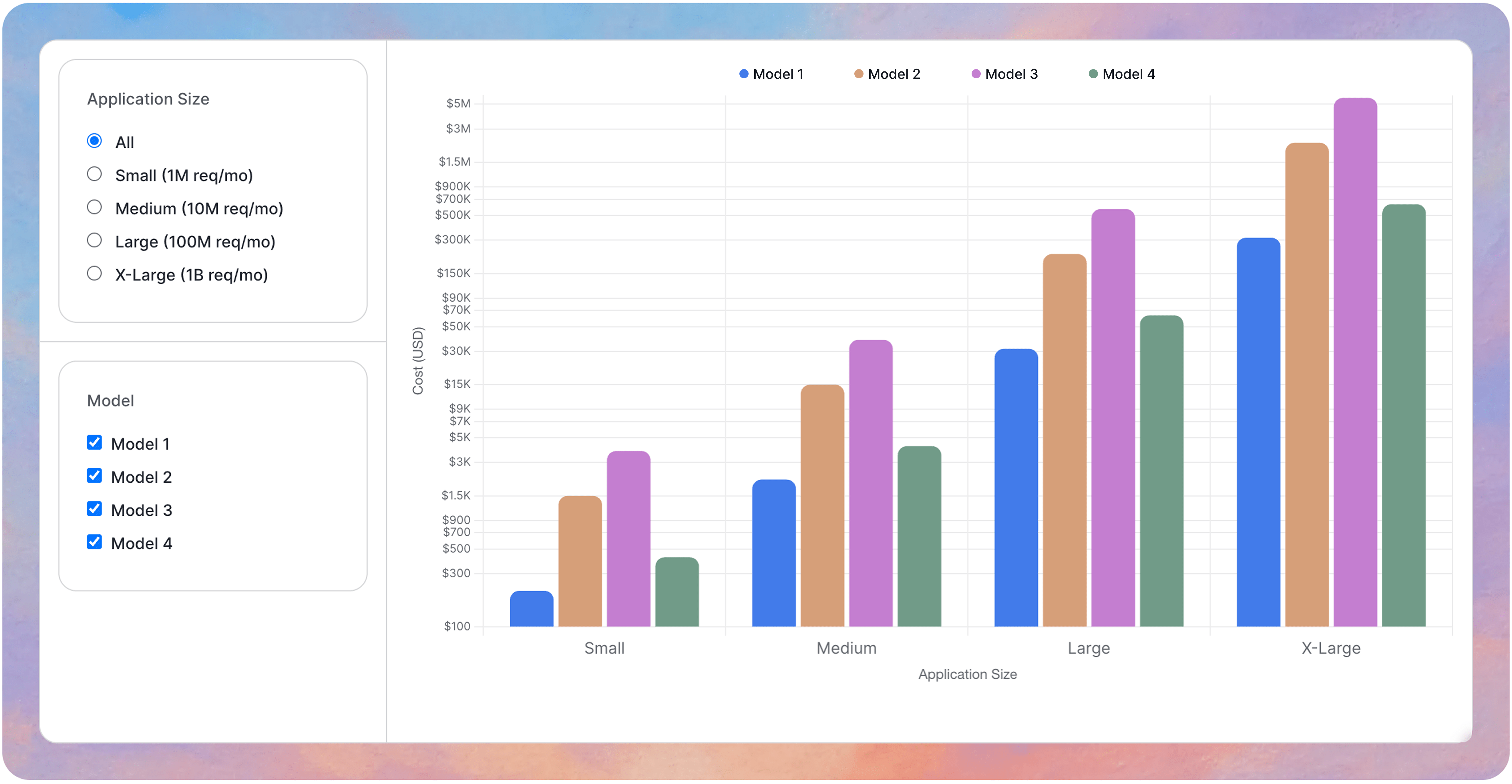 The difference between the best performing model vs. least cost-effective model